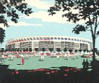 Long after the Fair has gone, the city's new Shea Stadium will remain as the latest word in comfort, convenience and design for sporting arenas. It seats 55,000 for baseball; for football, 10,000 of these seats in two arc-shaped stands are moved on tracks to provide better sideline viewing, and 5,000 bleacher seats are set up at the arena's open end. During the season the Mets and Jets play all their home games at the Stadium. When the teams are away, special events such as college football games are sometimes presented.